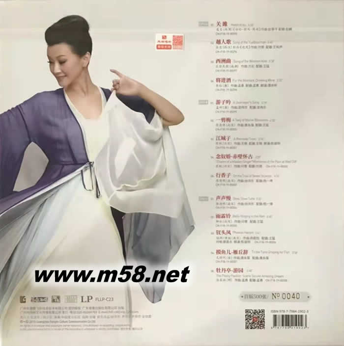 價格為估,以實到貨為準! The Epic of Love愛的史詩 美國 1:1 直刻母版 黑膠 限量版(m58.net) 於2008年獲得第49屆美國格萊美(Grammy Awards)年度最佳跨界古典音樂大碟獎(Best Classical Crossover Album of the Year)提名后,中國著名女歌唱家宋祖英的歌唱藝術水平在國際樂壇得到廣泛地認同,備受樂迷和專業(yè)樂評人一致推崇,曾被邀請與多位國際知名的歌唱家如多明戈(Placido Domingo)和波切利(Andrea Bocelli)等同臺合作演出,奠定了她在國內、外樂壇的超然地位。宋祖英於過往數(shù)年間在推廣中國音樂方面充滿熱情,不遺余力,作出了多方面的貢獻,。她除了到多個國內和國際城市演出將中國美樂呈獻給各地樂迷欣賞外,她亦於2011年9月集合了中國現(xiàn)今最出色的作曲家、演奏家、指揮家和樂團,以中國歷代源遠流長,廣博淵深的與「愛」為主題的經(jīng)典詩、詞和古曲作藍本,將這些傳世已久的文學經(jīng)典配以全新的創(chuàng)作音樂,以現(xiàn)代的形式演繹,在將現(xiàn)今中國音樂的實況和水平展視給世人觀賞的同時,亦能將歷久常新的文學瑰寶以動人的音樂,天籟般式的唱詠,深入淺出地向世界各地人民傳播。參與這個極具深長意義的錄音項目的殿堂級音樂家包括徐沛東、金鐵林、孟勇、趙季平、印青,演奏家張強、趙家珍、戴亞、杜聰、王中山,歌唱家廖昌永,著名演藝人陳道明和濮存昕,配合由卓越指揮家余隆帶領之中國愛樂樂團,將十四首中國歷代最動人心弦,歌頌愛之偉大和令人沒齒難忘的詩、詞和曲以最動人、最優(yōu)美的形態(tài)顯示。這些耳熟能詳?shù)脑娫~樂曲包括【關睢】、【越人歌】、【西洲曲】、【將進酒】、【游子吟】、【一剪梅】、【江城子】、【念奴嬌】、【行香子】、【聲聲慢】、【雨霖鈴】、【釵頭鳳】、【摸魚兒】和【牡丹亭】等。全部錄音過程在北京中央人民廣播電臺演奏廳進行,前、后期的錄音製作由國際知名的「老虎魚」錄音室的工程師古達.普勒(Günter Pauler)和韓斯-約格.莫斯克施(Hans-Jörg Maucksch)全程負責,他們採用極級的實況錄音器材和錄音方法,加上他們高超的專業(yè)技術和豐富的經(jīng)驗,使整個專輯的錄音效果達致頂級水平,加上以直接數(shù)字流(DSD)制式,環(huán)迴多聲軌錄製,配以SACD為載體,現(xiàn)場立體感的效果更為顯著。這專輯除了令你更能深入了解和多角度欣賞中國音樂之時,亦能全面體驗內涵豐富,底薀深厚的中國古典文學。