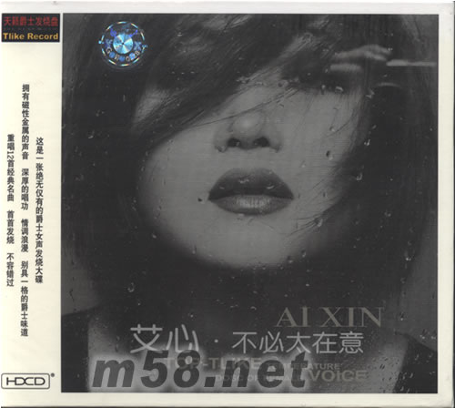 價格為估,以實到貨為準! 不必太在意(m58.net) 耳熟能詳的歌曲,由艾心用爵士的方式唱出,卻是別有一番風情。 隨碟附送艾心各種黑白、彩色造型精巧小寫真。