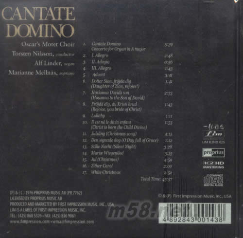 黑教堂 CANTATE DOMINO K2HD(m58.net) K2HD系列有: 1 THIS IS K2 HD SOUND! K2HD 2. FALLA EL AMOR BRUJO K2HD 3. 天鵝湖SWAN LAKE K2HD 4. FLAMENCO 法蘭明高吉它 K2HD 5. BAMBOO(大綠竹 尺八大師 K2HD 6. 赤壁懷古K2HD(李煒古箏獨奏) K2HD 7. 黑教堂 CANTATE DOMINO K2HD