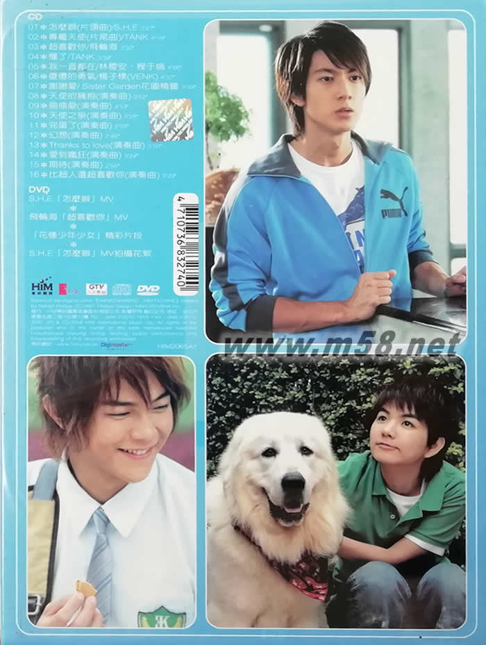 最MAN的偶像劇 最HI的原聲帶 S.H.E 飛輪海 TANK聯(lián)手出輯 7首全新單曲及9首演奏曲 DVD加值收錄S.H.E[怎么辦]MV+飛輪海[超喜歡你]MV+[花樣少年少女]精彩片段+S.H.E[怎么辦]MV拍攝花絮