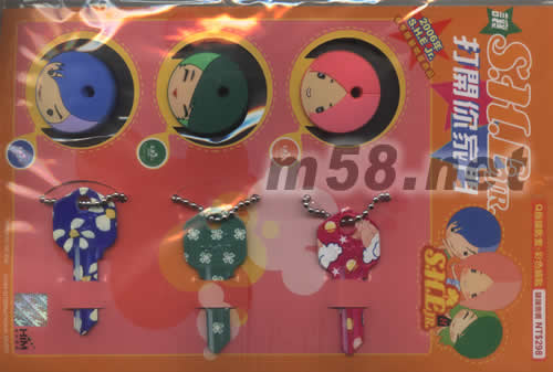 2006年S.H.E Q版鑰匙套+彩色鑰匙套裝(m58.net) 鑰匙長度:5.5CM 匙套直徑:3CM 全臺第一把自己打的彩色鑰匙 2006年S.H.E Jr.春季明星商品 Q版鑰匙套+彩色鑰匙 所附鑰匙可至鎖店打成屬于你自己的鑰 匙1組含3個鑰匙套及3支鑰匙