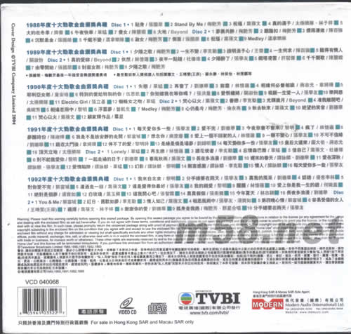 1988-1992十大勁歌金曲頌獎(jiǎng)典禮VCD十碟套裝套裝背面圖片