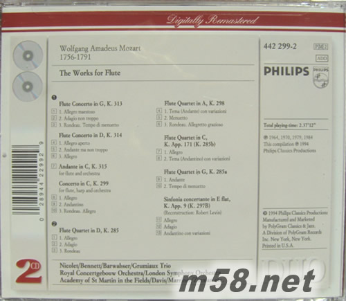 莫扎特長(zhǎng)笛作品THE WORKS FOR FLUTE(PHILIPS系列老版)專輯背面圖片
