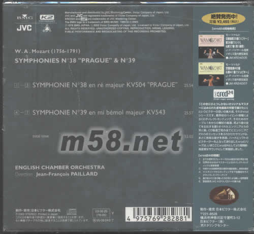 MOZART SYMPHONIES N 38 PRAGUE &N 39 日本版XRCD專輯背面圖片