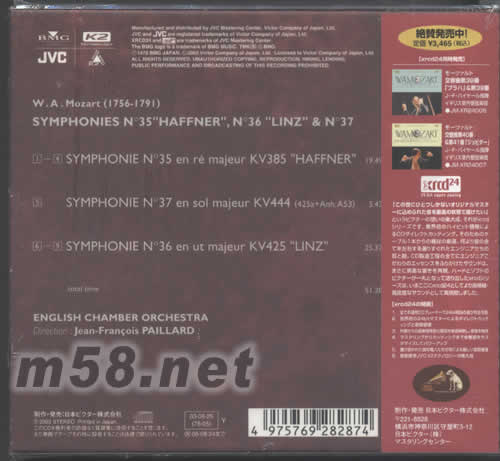 MOZART SYMPHONIES N 35 HAFFNER N36 LINZ &N37日本版XRCD專輯背面圖片