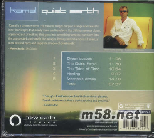 寧靜詳和 QUIET EARTH(m58.net) 寧靜詳和 心靈音樂大師Kamal創作及演繹多首作品,輕柔的旋律,紓緩的樂章感染力著長空萬里,藍天碧海和祥和境界,有松弛心靈及啟發思維世界和平最佳效用,New Earth頂級錄制,音色通透自然.