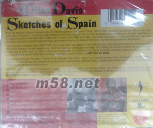 價格為估,以實到貨為準! SKETCHES OF SPAIN 西班牙素描歐版(m58.net) Miles Davis是爵士音樂史上杰出的指揮家和小號演奏家,在他的一生中,對許多風格的爵士樂都有深入的研究。60年代后期,Davis開創了Fusion Jazz(融合爵士樂),馬上對世界爵士樂壇產生了巨大的影響,這種音樂也變成了當今極為時尚的音樂形式。 美國傳奇爵士音樂人MILES DAVIS 重發1960年經典專輯 2CD,