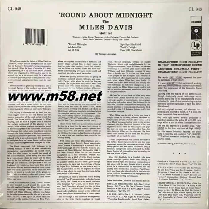 Round About Midnight 午夜時分(爵士四重奏 小號、薩克斯、鋼琴、貝斯) 黑膠(m58.net)