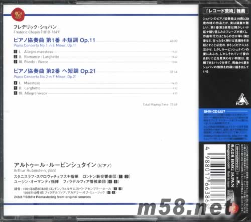 肖邦第一二鋼琴協奏曲CHOPIN: PIANO CONCERTOS NOS.1 & 2(SHM-CD系列日本限量版)(m58.net) 錄音于:1961、1968年