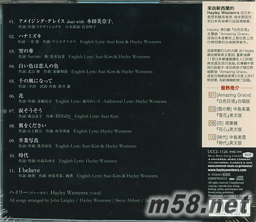 這張策劃已久的大碟,由HAYLEY親自撰寫英文歌詞,重新演繹11首日本樂土最膾炙人口的經典民謠及流行金曲。在專輯中更與已故歌手