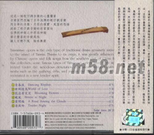 專輯中的曲目都是人們耳熟能詳的歌仔調,即使經過改編,也都保留了原有的風味,所以聽來是那么親切可人.難得的是,古箏的演奏是如此貼切自然,一如預期地將歌仔調音樂的神韻做了最好的詮釋和創新,讓聽音樂的耳朵有著如沐春風般的舒活.這張佳作,實在不可不聽.