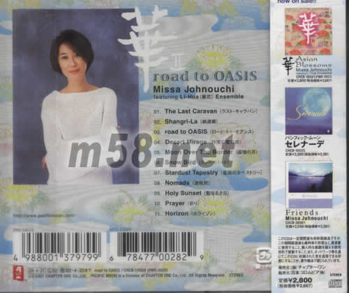 女作家,指揮家及鋼琴手城之內(nèi)美莎,聊同四位中國藉女樂手組成之"麗花音樂團(tuán)"演繹11首作品,將極富民族色彩的中國樂器,編成一幅幅的神奇圖景,帶有濃烈西域風(fēng)情的旋律,優(yōu)美溫柔的音符,令人迷醉.