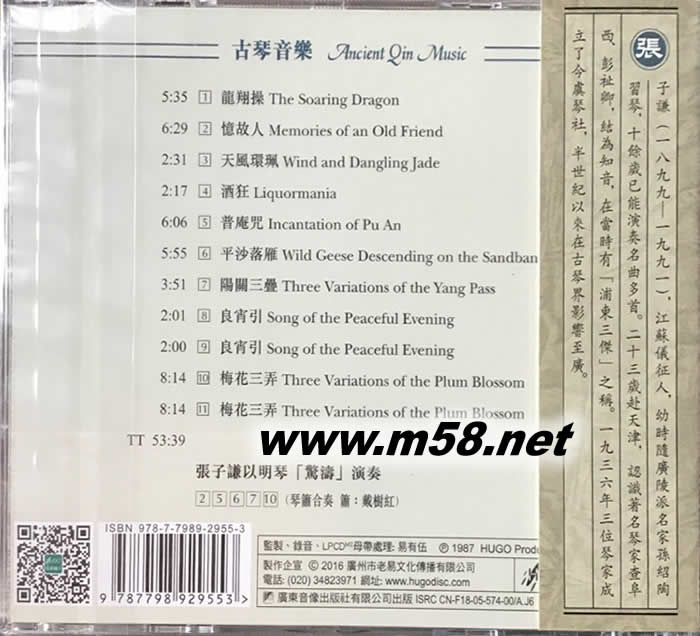 廣陵琴韻(一)古琴演奏:張子謙、戴樹紅專輯背面圖片