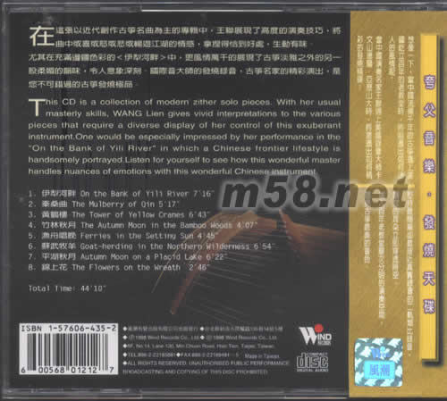 在這張以近代劇作古箏名曲為主的專輯中,王聯展現了高度的演奏的演奏持巧,將曲中或喜或怒或悲或暢游江湖的情感,拿捏得恰到好處,生動有味。尤其在充滿邊疆色彩的《伊犁河畔》中,更風情萬千的展現了古箏淡雅之外的另一股柔媚的韻味,令人意象深刻,國際音樂大師的發燒錄音,古箏名家的精彩演出,是您不可以錯過的古箏發燒極品