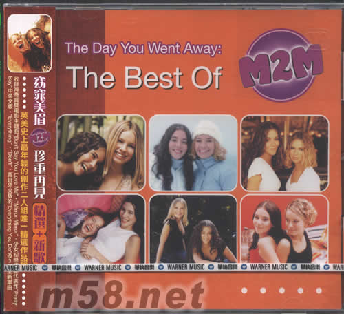 The Day You Went Away:The Best Of M2M 窈窕美眉(m58.net) The Day You Went Away:The Best Of 英美史上最年輕的創(chuàng)作二人組唯一精選作品輯 來自挪威的音樂小精靈Marit Larsen(乖乖美眉-瑪莉特)及Marion Ravn(好動美眉-瑪莉安)二位窈窕美眉,于紅遍全球的卡通小明星[神奇寶貝皮卡丘]電影原聲帶中初試啼聲演唱主題曲"Don't Say You Love Me"后,不但在排行榜中頻傳佳績,更是樂迷熱切詢問的焦點人物。處女大碟[紫色戀情](Shades Of Purple)躍登Billboard熱門潛力榜冠軍后座,專輯也獲是美國滾石雜志3顆半星的佳評,單曲"Mirror Mirror"也登銷售榜Top 10。少女初戀情歌代表作"Pretty Boy",更是樂迷耳熟能詳?shù)模艿脚_灣歌迷瘋狂喜愛的她們,也將"Pretty Boy"改唱成中文版感激寶島樂迷的溫馨情誼。2001年底發(fā)表第二張專輯[The Big Room]專輯中,我們聽見窈窕美眉在和諧美聲之外,將溫柔的少女芳心作一些質(zhì)量的改變,增添新世代少女自信表態(tài)的搖滾濃度,收錄小女生大主張首支單曲"Everything"、小女生白木屋戀曲"Don't"、小女生新愛情宣言"What You Do About Me"…等。 雖然M2M這個組合在2002年劃下休止符,但這二位窈窕美眉還是將最好的作品留給喜愛她們的歌迷,這張[The Day You Went Away]精選專輯,除了收錄了前兩張專輯中的暢銷作品外,還特別收錄了3首全新作品以饗樂迷。20首作品,珍藏M2M最美的思念。
