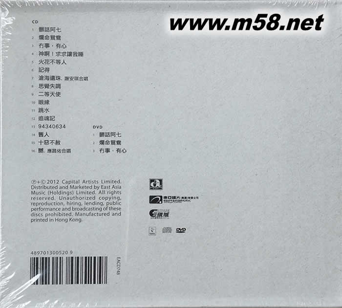 CD 01. 臟話阿七 (New Song) 02. 爛命鴛鴦 (New Song) 03. 冇事,有心 (New Song) 04. 神?。∏笄笞屛宜? 05. 火花不等人 06. 記得 07. 滄海遺珠 (謝安琪合唱) 08. 思覺失調(diào) 09. 二等天使 10. 眼緣 11. 跳水 12. 追魂記 13. 94340634 14. 舊人 15. 十惡不赦 16. 嬲 (應(yīng)昌佑合唱) (New Song) DVD 01. 臟話阿七 02. 爛命鴛鴦 03. 冇事,有心