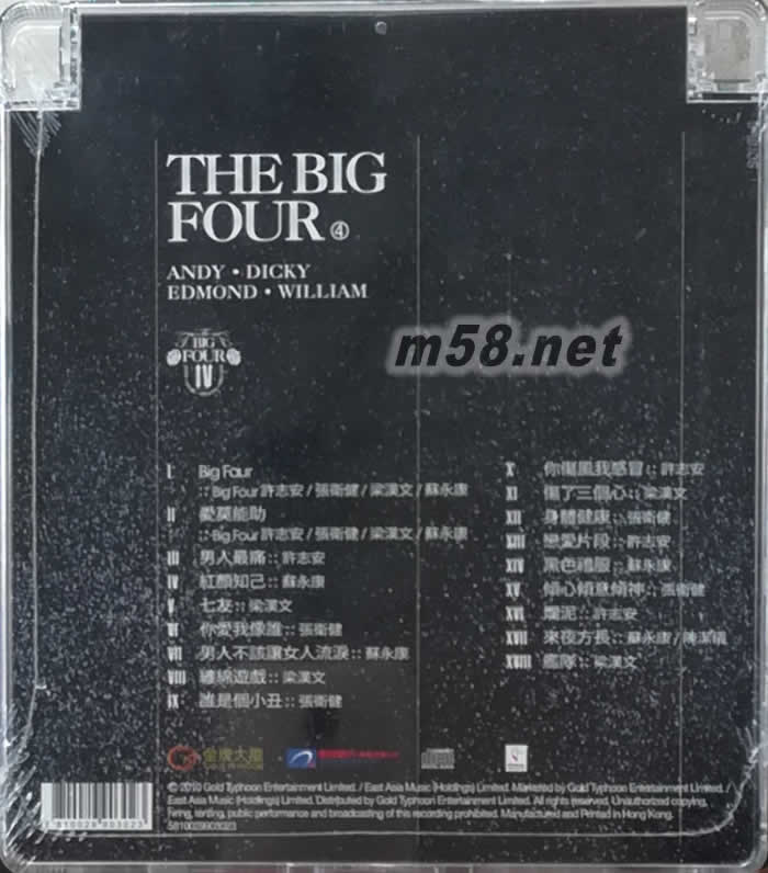 《The Big Hits Big Four》碟內(nèi)收錄了Big Four合唱的兩首「Big Four」和「愛莫能助」,以及16首四子各自的經(jīng)典代表作。唱片形象設(shè)計(jì)則由蘇永康負(fù)責(zé)。