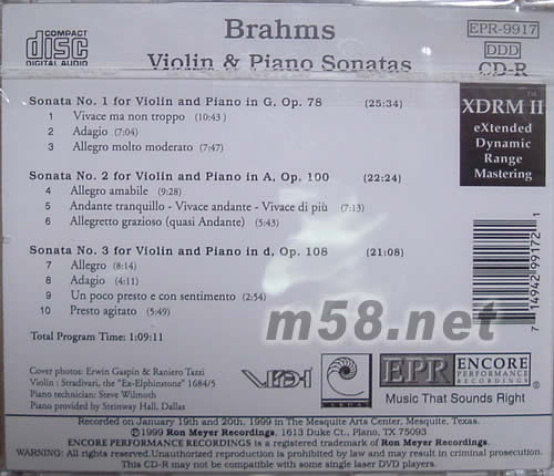 BRAHMS VIOLIN & PIANO SONATAS 小提琴與鋼琴雙重奏24k(m58.net)