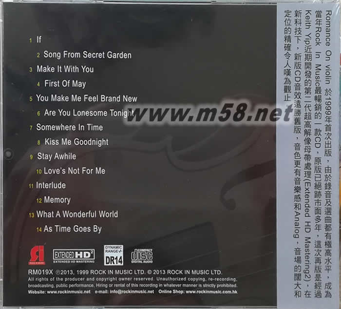 ROMANCE ON VIOLIN / 浪漫小提琴(m58.net) 發燒提琴,經典天碟再現 超高解像母帶處理技術