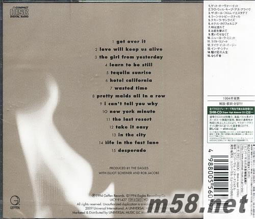 1.Get Over It 2.Love Will Keep Us Alive 3.The Girl from Yesterday 4.Learn to Be Still 5.Tequila Sunrise 6.Hotel California 7.Wasted Time 8.Pretty Maids All in a Row 9.I Can't Tell You Why 10.New York Minute 11.The Last Resort 12.Take It Easy 13.In the City 14.Life in the Fast Lane 15.Desperado
