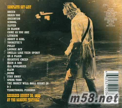 1. Breed 2. Drain You 3. Aneurysm 4. School 5. Sliver 6. In Bloom 7. Come As You Are 8. Lithium 9. About A Girl 10. Tourette's 11. Polly 12. Lounge Act 13. Smells Like Teen Spirit 14. On A Plain 15. Negative Creep 16. Been A Son 17. All Apologies 18. Blew 19. Dumb 20. Stay Away 21. Spank Thru 22. Love Buzz*(*not included on CD/LP) 23. The Money Will Roll Right In 24. D-7 25. Territorial Pissings