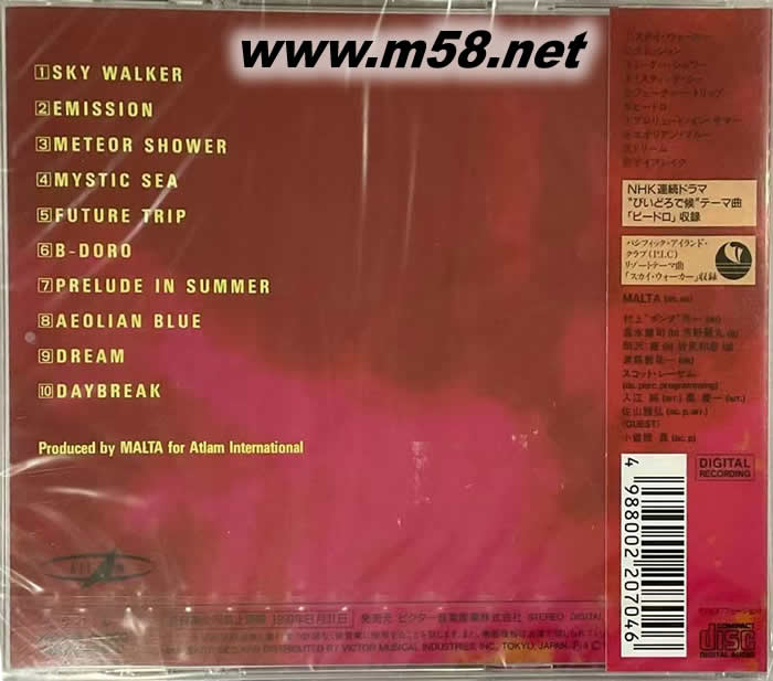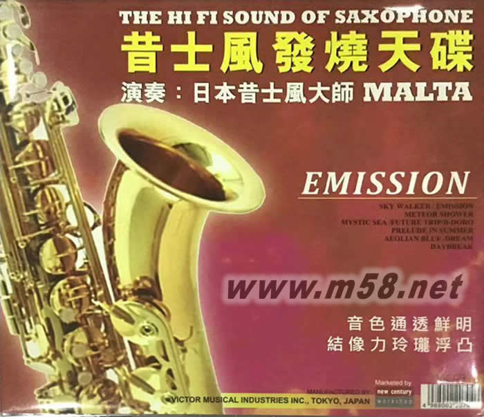 MALTA 昔士風發燒天碟(JVC日本版) 紅色封面(m58.net) 音色通透鮮明 結像力玲瓏浮凸 演奏: 日本昔士風大師 MALTA MALTA與多位編曲人合作,相得益彰 。此碟編曲豐富 , 加上採用新技術, 讓中音聽起來效果更佳 ,予人有一種夏天盛放感覺 。 本專輯是享譽國際JAZZ樂壇的日本薩克斯演奏大師MALTA用薩克斯演奏的流行音樂,MALTA的演奏風格浪漫醇和,優美迷人的旋律和帶有藍調色彩的演奏底蘊使這張專輯充滿溫馨的醉人氣息,被譽為東方Kenny G。也是CD聖經上榜名盤,是一張難得的JAZZ發燒級音樂專輯