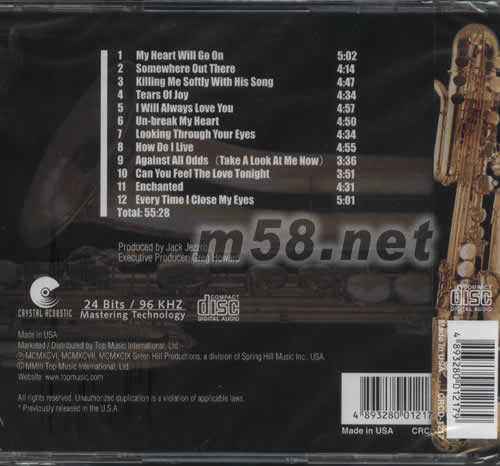 LIGHT JAZZ 界SAXOPHONE 手SAM LEVINE 示范12首HIFI XAX當中不乏浪漫激情樂曲,如SOMEWHERE OUT THERE ,I WILL ALWAYS LOVE YOU ,KILLING ME SOFTLY WITH HIS SONG,TEARS OF JOY……