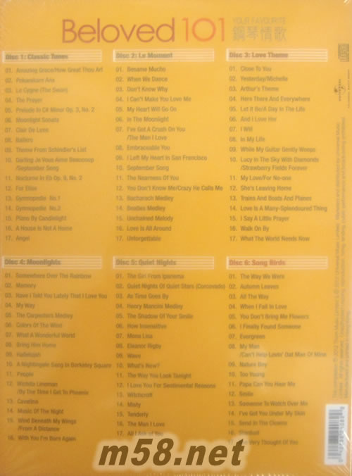 產(chǎn)品名稱:  BELOVED 101 鋼琴情歌 101 套裝   [6CD]