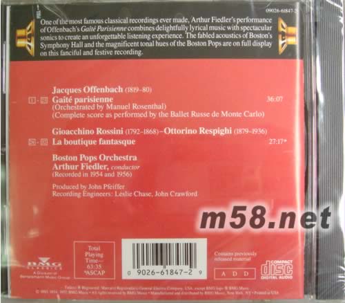 Jacques offenbach(1819-80) 1-23 Gaite parisienne (orchestrated by manuel rosenthal) (complete score as performed by the ballet russe de monte carlo) Gioacchino Rossin(1792-1868)-Ottorino Resping hi(1879-1936) 24-32 La boutique fantasque Boston pops orchestra Arthur fiedler,conductor