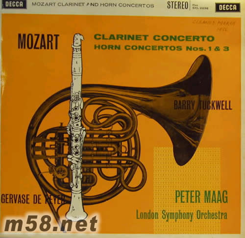Mozart Clarinet Concerto in A Major K.622 1. 1st Movement Allegro 2. 2nd Movement Adagio 3. 3rd Movement Rondo; Allegro Gervase De Peyer Horn Concerto No.1 in D Major K.412 4. 1st Movement Allegro 5. 2nd Movement Allegro Horn Concerto No.3 in E Flat Major K.447 6. 1st Movement Allegro 7. 2nd Movement Romanze; Larghetto 3. 3rd Movement Allegro Barry Tuckwell