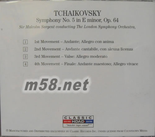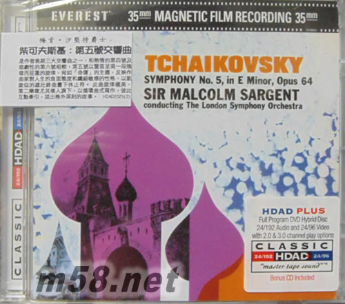 柴可夫斯基 第五號交響曲TCHAIKOVSKY SYMPHONY NO 5 IN E MINOR OP64 HDAD(m58.net) 由CLASSIC公司出版,HDCD PLUS FULL PROGRAM DVD HYTRID DISC HDAD,24/192 AUDO AND 24/96 VIDEO WITH 20 &30 CHENNEL PLAY OPTIONS. BONUS CD HDCD PLUS完整的程序DVD HYTRID DISC HDAD,24/192的音頻和24/96視頻,20及30多導播放選項。