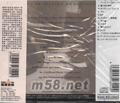 低音大提琴樂團超精選(日本版)專輯背面圖片
