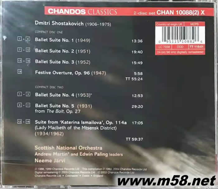 Shostakovich: Ballet Suites 肖斯塔高維奇: 第1~5號芭蕾組曲/節慶序曲/組曲 (2CD)專輯背面圖片