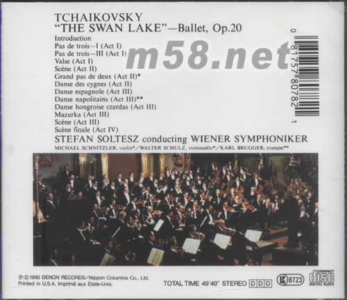 天龍HIFI天鵝湖(TCHAIKOVSKY THE SWAN LAKE SOLTESZ)(m58.net) 請點看產品正、背面大圖 著名指揮蘇迪斯領導維也納交響樂團演繹芭蕾舞劇天鵝湖選段,優美的弦樂,宏大的場面在天龍的精彩錄音下重現,吹號與定音鼓的質感及龐大的演奏,是試音首選。原裝美國版。