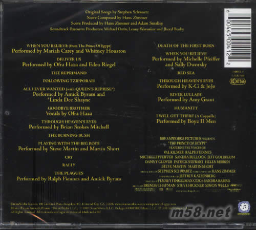 THE PRINCE OF EGYPT(埃及王子)原聲碟專(zhuān)輯背面圖片