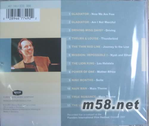 1.Now We Are Free - (from "Gladiator") 2.Am I Not Merciful - (from "Gladiator") 3.Driving - (from "Driving Miss Daisy") 4.Thunderbird - (from "Thelma & Louise") 5.Journey to the Line - (from "The Thin Red Line") 6.Nyah and Ethan - (from "Mission: Impossible 2") 7.Lea Halalela - (from "The Lion King") 8.Mother Africa - (from "Power Of One") 9.Suite - (from "Nine Months") 10.Main Theme - (from "Rain Man") 11.Main Theme - (from "True Romance") 12.Busa - (from "The Lion King")