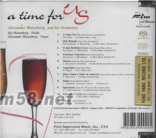 a time for us DSD版,以管弦樂隊形式演繹十一首電影名主題曲,FIM將始錄于97年版本以DSD方式重新制作發行,弦樂音色清晰甜美,旋律熟悉,悅耳動聽,音場遼闊深遠,氣氛迷人。