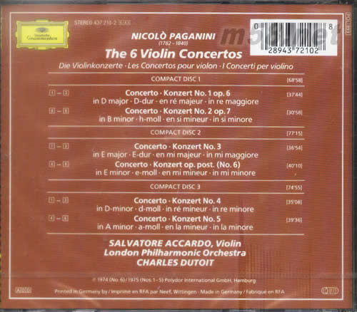 帕格尼尼小提琴協奏曲 PAGANINI THE 6 VIOLIN CONCERTOS專輯背面圖片