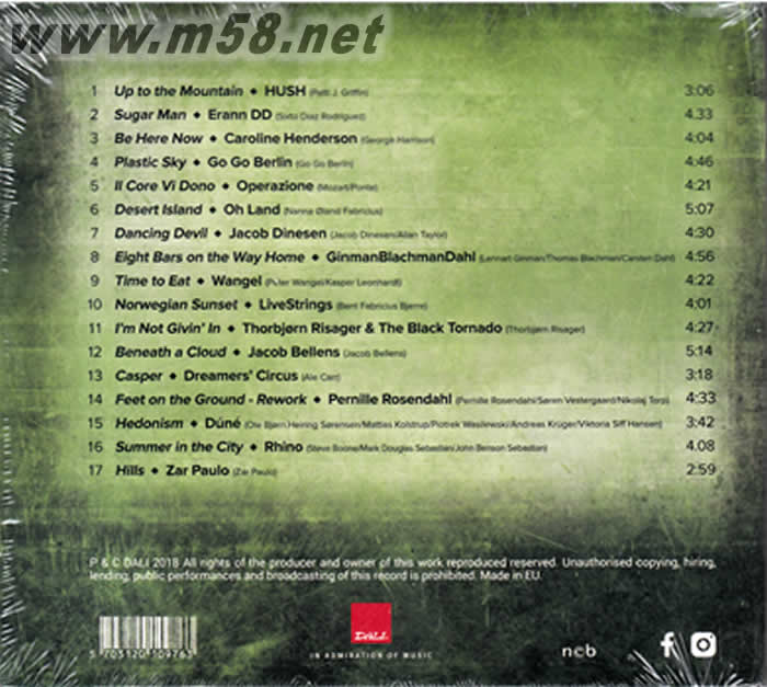 CD制作一如往常,堪稱非常用心。環保紙盒包裝,手冊內頁資料豐富,不連封面、封底就有26頁,內中闡述了他們對聲音和音樂回放的理念,CD收錄的17個音軌每一曲都有專頁介紹,介紹藝人、介紹歌曲,更詳列所有錄音設備,有的曲目還特別說明了錄音細節。一邊聽,一邊對照手冊,更能感受到Dali的用心。