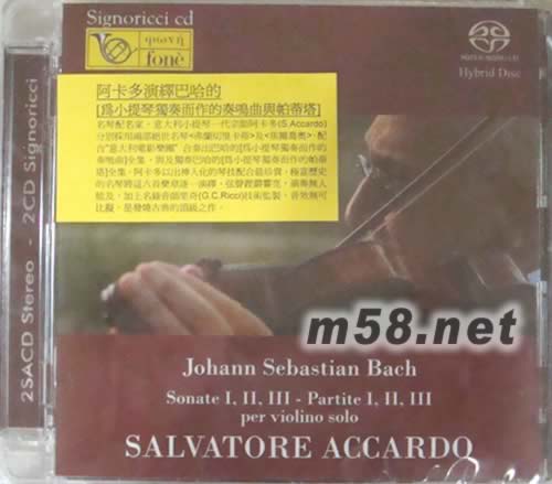 阿卡演奏巴赫的小提琴 SACD(m58.net) 名琴配名家,意大利小提琴一代宗師阿卡多(Salvatore Accardo)分別採(cǎi)用兩部絕世名琴,斯特拉迪瓦里(Antonio Stradivari)於1727年製造之<弗蘭切里卡蒂('Hart'ex Francescatti)>及馬吉尼(Maggini)於1620年製造之<焦?fàn)枂虋W(Giorgio III)>,配合"意大利電影樂(lè)團(tuán)(Orchestra da Camera Italiana)" 合奏出巴哈(J.S.Bach)的[為小提琴獨(dú)奏而作的奏鳴曲(Sonatas for Solo Violin)]全集,與及獨(dú)奏巴哈的[為小提琴獨(dú)奏而作的帕蒂塔(Partitas for Solo Violin)]全集,阿卡多以出神入化的琴技配合最珍貴、極富歷史的名琴將這六首樂(lè)章逐一演繹,弦聲鏗鏘響亮,演奏無(wú)人能及,加上名錄音師里奇(Giulio Cesare Ricci)技術(shù)監(jiān)製,音效無(wú)可比擬,是發(fā)燒古典的頂級(jí)之作。
