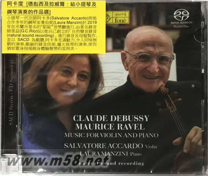 德彪西 拉威爾 小提琴與鋼琴[Claude Debussy - Maurie Ravel : Music for Violin And Piano] SACD(m58.net) Salvatore Accardo (小提琴) Laura Manzini (鋼琴) 1. 意大利小提琴一代宗師阿卡多(Salvatore Accardo)公認(rèn)擁有超凡卓越的琴技,仿如人琴合一般的演奏,猶似行云流水,變化多端,使人著迷。