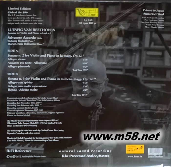 貝多芬給小提琴及鋼琴的第二及三奏鳴曲 BEETHOVEN SONATAS FOR VIOLIN AND IPANO N.2 AND N.3 黑膠 透明膠日本版(m58.net)