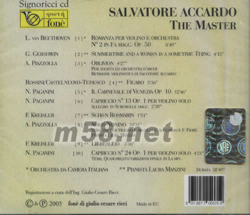 THE MASTER阿卡多演繹貝多芬、帕格尼尼專輯背面圖片