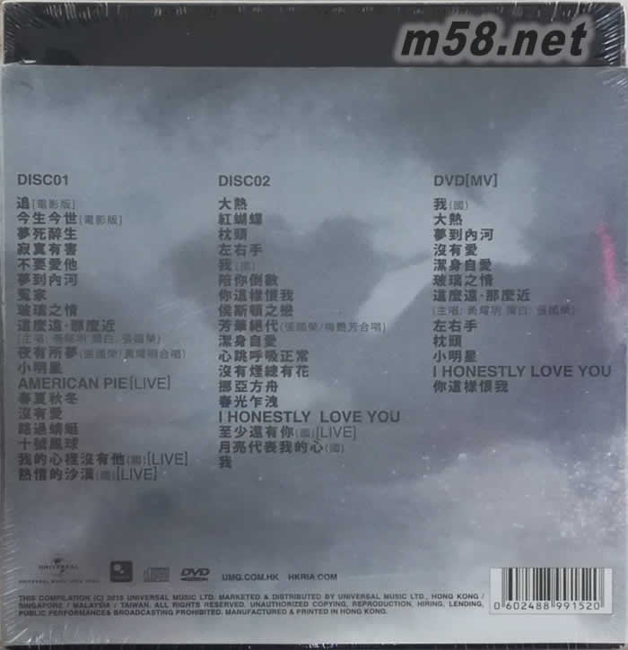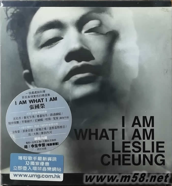I Am What I Am 張國榮 2CD+DVD(m58.net) 2CD 36首傳世經典:- 左右手 春光乍泄 春夏秋冬 路過蜻蜓 陪你倒數 芳華絕代 紅蝴蝶 枕頭 冤家 [最后作品] 12首珍貴MV包括6首DVD首度出版:- 沒有愛 潔身自愛 玻璃之情 這麼遠那麼近 我 大熱 夢到內河 特別首度收錄 樂迷苦等16年 電影金枝玉葉主題曲及插曲:- 追/今生今世 [電影版]我們的哥哥,你..認識有幾多? 絕色才藝 換來萬千寵愛最紅最熱 贏得音樂自主 I am What I am充滿主見的環球巨星 張國榮 一張處處銘刻著哥哥真情實感的精選唱片 由哥哥親手打造闡(音:展)釋:「誰是張國榮?」