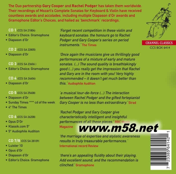小提琴與鋼琴奏莫扎特 鳴曲全集Rachel Podger & Gary Cooper Mozart complete Sonatas for keyboard and violin 8CD套裝專輯背面圖片
