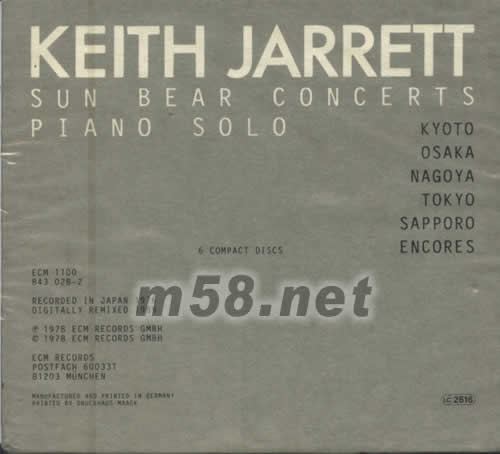 SUN BEAR CONCERTS PIANO SOLO日本太陽之旅鋼琴獨奏會6碟套裝專輯背面圖片