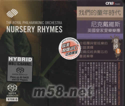 價格為估,以實到貨為準(zhǔn)! 我們的童年時代 NURSERY RHYMES SACD(m58.net) 有沒有記起小時候我們在校園唱游堂皇上常常唱著的英式童謠歌曲,或是在詩歌班堂上練習(xí)時準(zhǔn)備作為表演的歌曲;隨著年代的不段變化,我們再接觸到這類英式文化的機會也相對越來越少,而童年那份回憶亦漸漸從記憶中擱淺下來。我們幸運地有機會再能從拾這些漸淡忘的記憶:《英男皇家愛樂樂團》重新推出這一張被譽為現(xiàn)今市面上最具娛樂性的童謠合唱發(fā)燒專輯。本碾精挑細(xì)選了二十首不可多得的經(jīng)典英語童謠《TWINKLE,TWINKLE LITTLE STAR》,中言語版本譯作[一閃一閃小星星];本歌曲先由管樂器帶領(lǐng)合唱團和聲,再由女聲唱出歌曲熟悉的每字一名,隨著澎湃管弦樂的互相襯托下,將歌曲的神髓推上高潮,感覺就仿佛將整座大教堂搬到面前一樣;接著的還有是哼唱得耳熟能詳?shù)摹禠AVENDER‘S BLUE》、《POLLY PRT THE KETTLE ON》、《MARY HAD A LITTLE LAMB》、《HEY DIDDLE DIDDIE》、《THREE BLIND MICE》、《SING A SONG OF SIXPENCE》、等童謠心備歌曲,這些歌曲深得很多著名的卡通動畫片段都取自這些歌曲作為背景音樂。最后當(dāng)然不能不提的是無人不曉的《LINDON BRIDGE》,就連三歲小孩也時常口中哼著唱的[有只雀仔跌落水]原版歌曲;本歌曲先由經(jīng)松的吹奏樂器引子帶出歌曲旋律,跟著男聲及女聲一唱一各互唱緊接著,再加上剛?cè)岵墓芟覙放荦執(zhí)装樽嘞拢瑲夥諢狒[,感覺煥然一新。本專輯由著名指揮大師《NICK DAVIES尼克戴維斯》帶領(lǐng)《英國皇家愛樂樂團》及各合唱團傾力演栓;先論選曲、編曲以至演繹都達(dá)至超級水準(zhǔn),尤其是在編曲及演繹方面,是有別於一般普通童謠合唱歌曲之音樂軟件;本專輯融入了大量古典音樂中的復(fù)雜元素,演唱時經(jīng)松自然,高潮時則氣勢磅礴,再以SACD高科技錄音技術(shù)制作,音色更臻完美!
