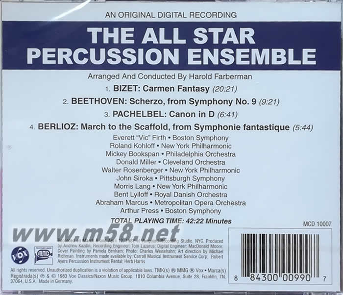 The All Star Percussion Ensemble 敲擊卡門專輯背面圖片
