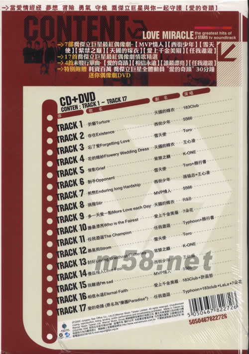 產品名稱:  愛的奇跡喬杰立巨星最紅偶像劇情歌情選   [CD+DVD]