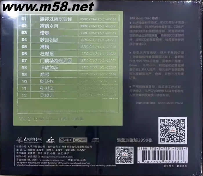 李思思 往事如煙 24K金碟 GOLD CD 純金碟 限量版專輯背面圖片